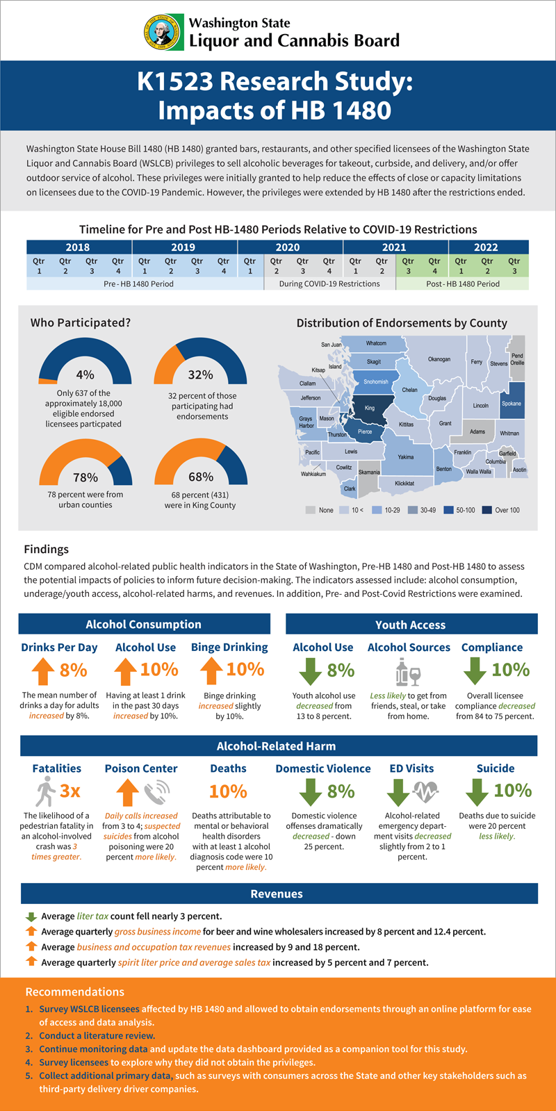 Washington State House Bill 1480 (HB 1480) infographic of summary featuring selective visual data during the length of the study.